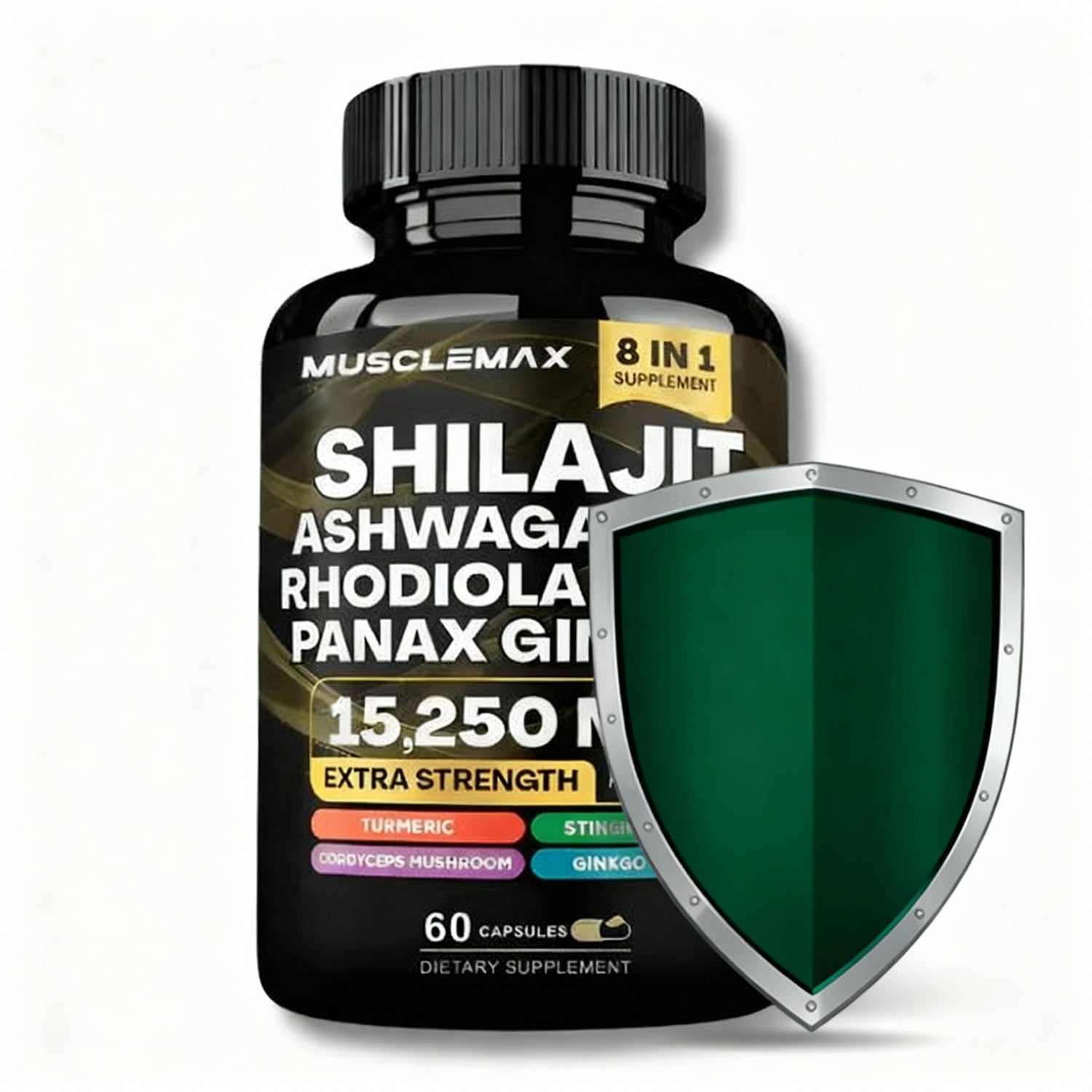MUSCLEMAX Shilajit: 8 Hierbas Ancestrales en 1 Cápsula Poderosa